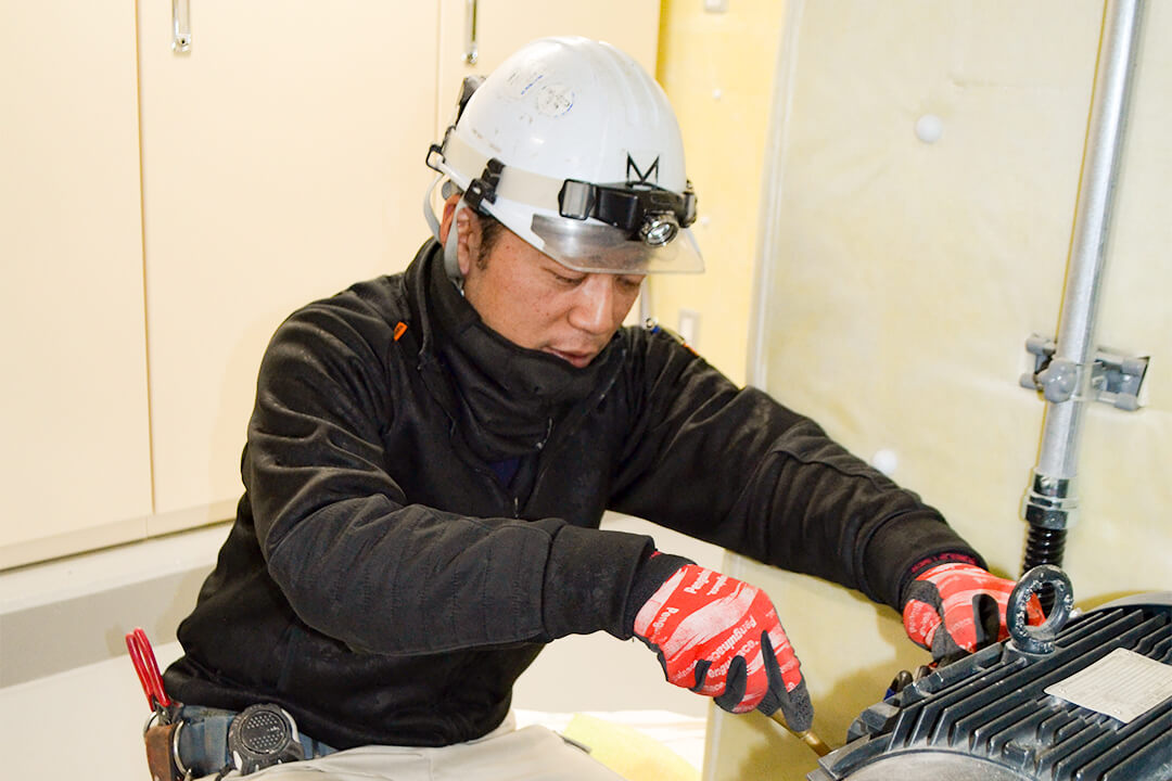 高校、専門学校と電気・電子を学んでいた為、それを活かした仕事と考え、電気工事士の仕事を選びました。